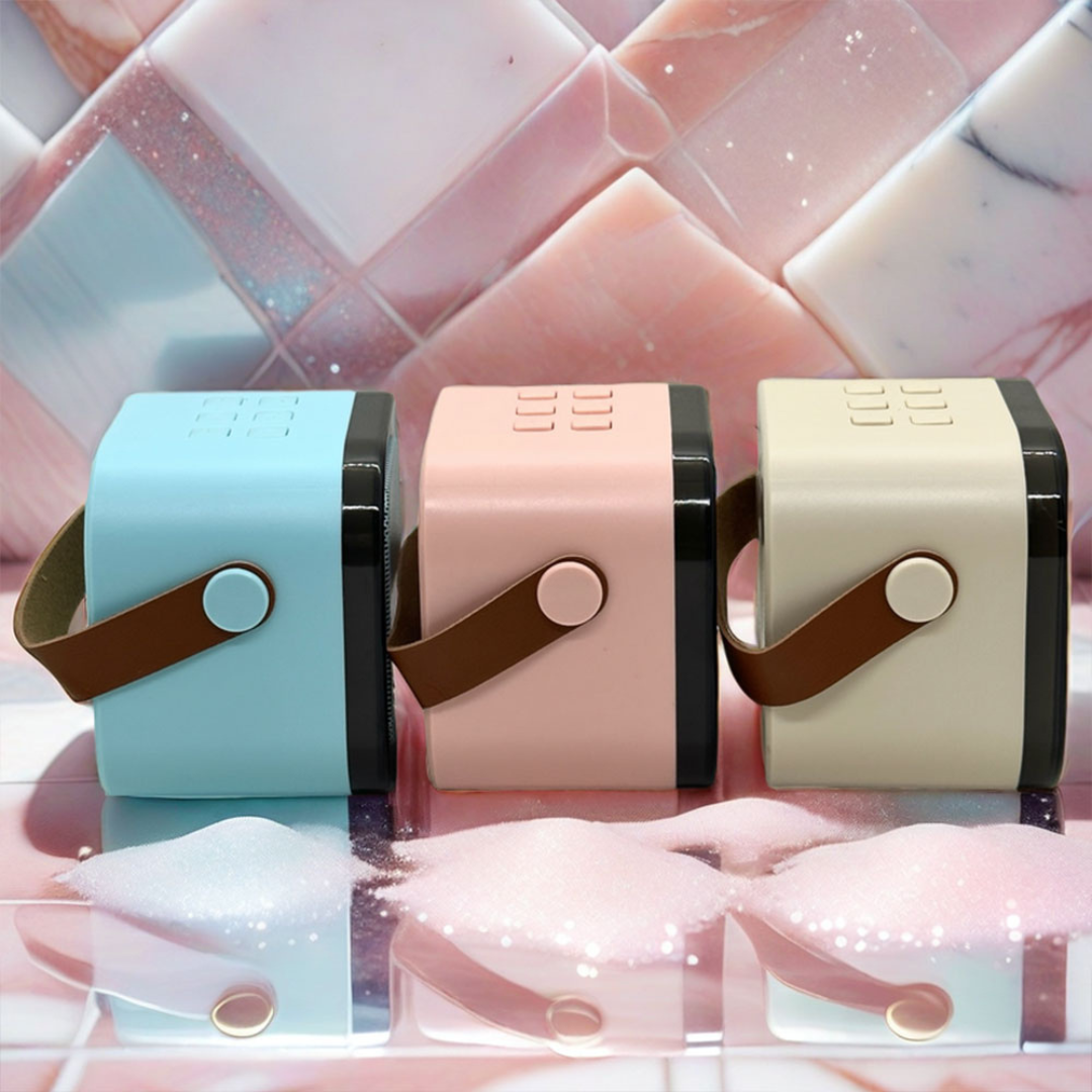Mini caixa de som compacta com luzes RGB para animar seus momentos.