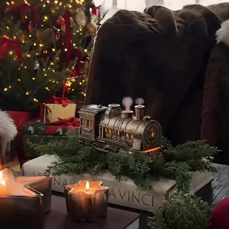 ✔️ DESIGN ENCANTEADOR DE LOCOMOTIVA – Um visual nostálgico e atraente de locomotiva a vapor com névoa subindo como fumaça de verdade, complementado por iluminação ambiente quente ou azul para combinar com a sua atmosfera.